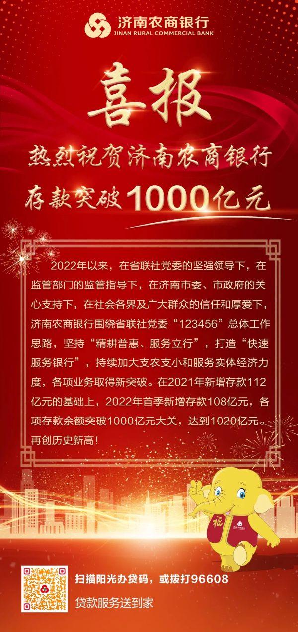 | “快速服务银行”!济南农商银行存款突破1000亿元 |